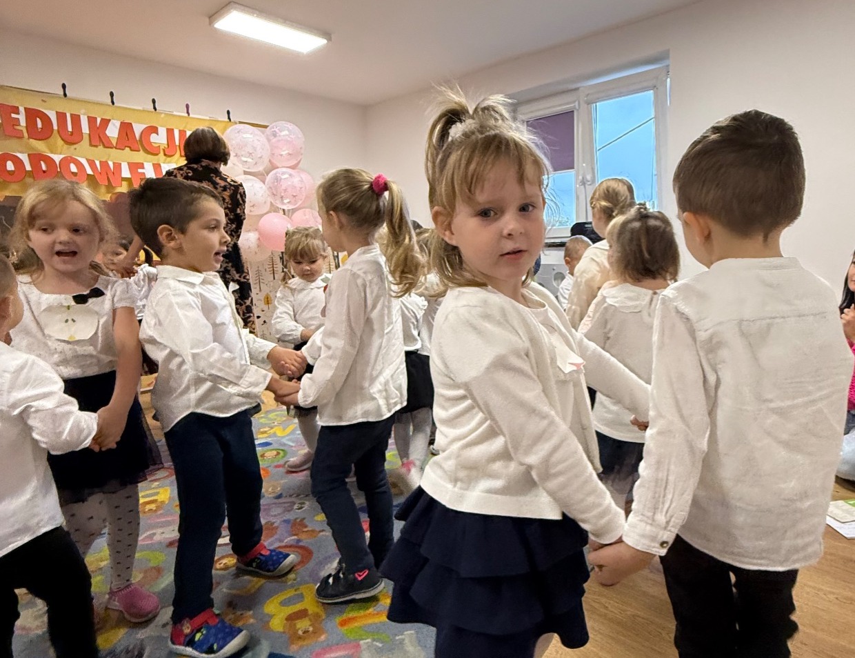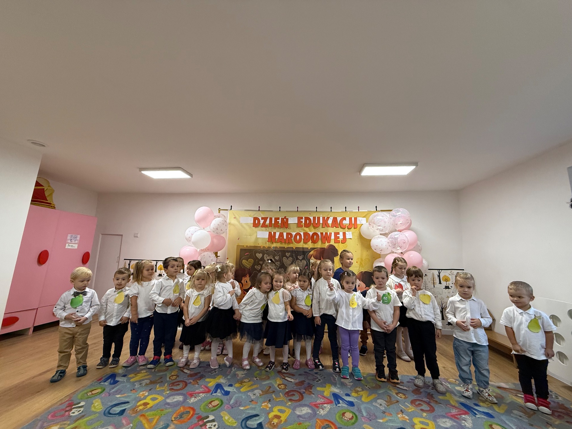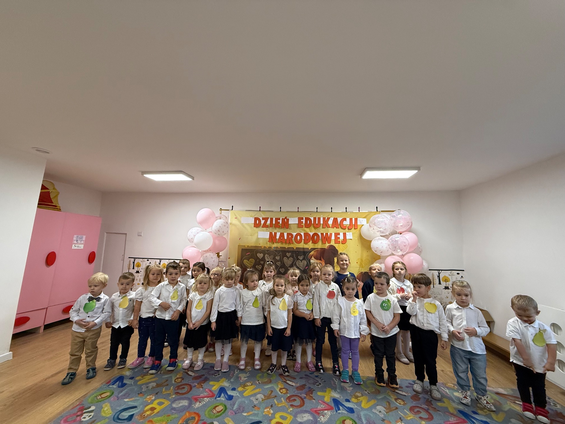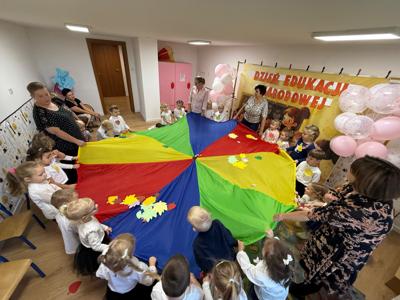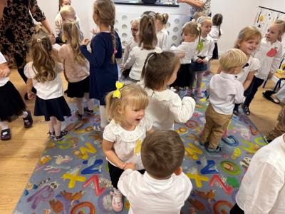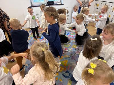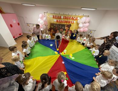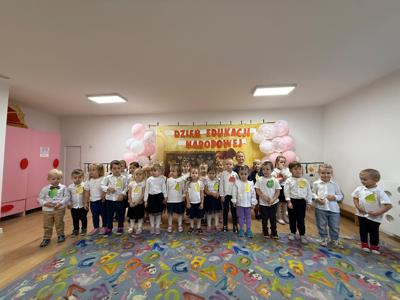 14 października w naszym Przedszkolu świętowaliśmy Dzień Edukacji Narodowej. Gospodarzami Akademii były dzieci z grupy "Żabki" i ''Pszczółki". Celem spotkania wszystkich grup było kształtowanie więzi emocjonalnej miedzy dziećmi, a pracownikami przedszkola. Równie ważne było kształtowanie postawy szacunku wobec osób pracujących w przedszkolu. Przedszkolaki pięknie uczciły Dzień Edukacji Narodowej. Były wierszyki, piosenki, piękne laurki i moc uśmiechów dla wszystkich pracowników przedszkola.
