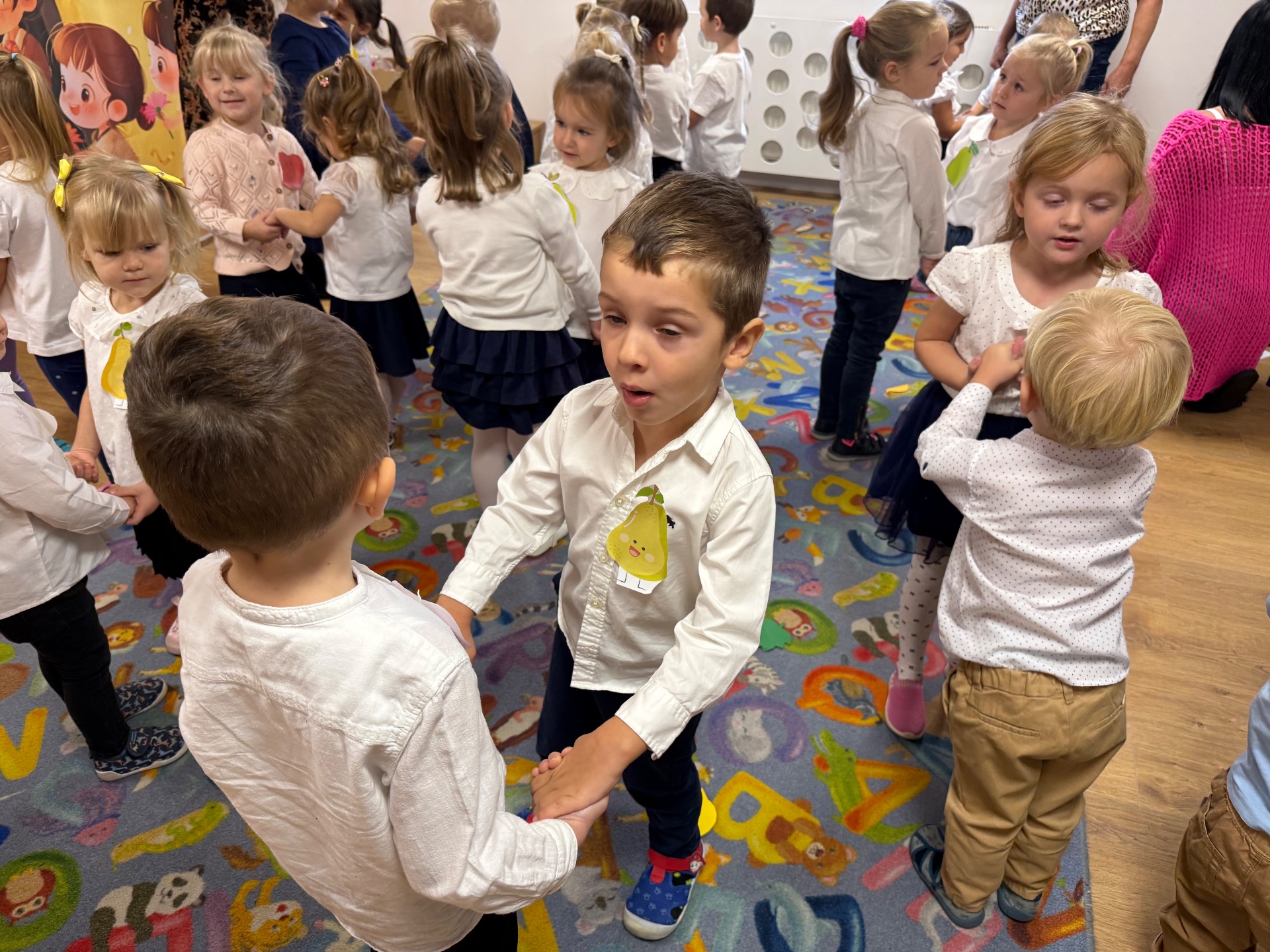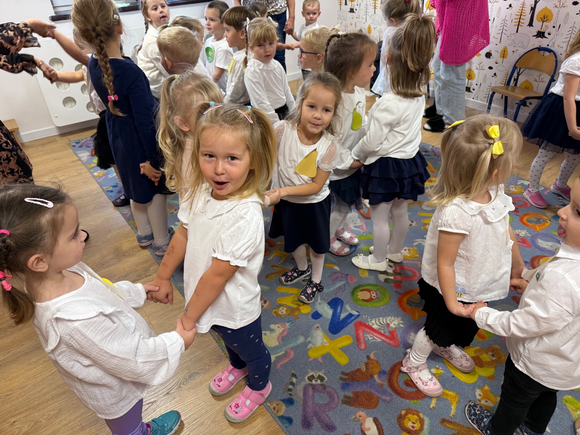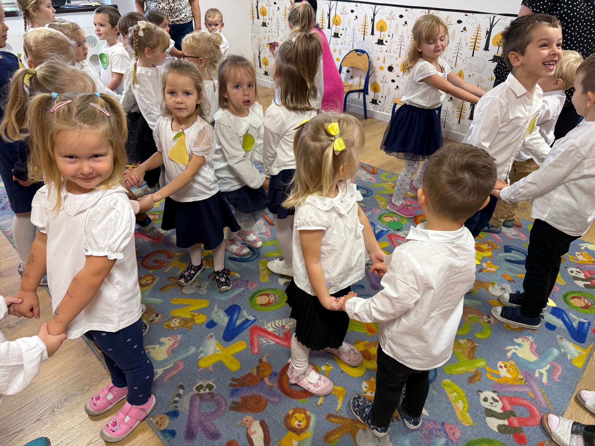 14 października w naszym Przedszkolu świętowaliśmy Dzień Edukacji Narodowej. Gospodarzami Akademii były dzieci z grupy "Żabki" i ''Pszczółki". Celem spotkania wszystkich grup było kształtowanie więzi emocjonalnej miedzy dziećmi, a pracownikami przedszkola. Równie ważne było kształtowanie postawy szacunku wobec osób pracujących w przedszkolu. Przedszkolaki pięknie uczciły Dzień Edukacji Narodowej. Były wierszyki, piosenki, piękne laurki i moc uśmiechów dla wszystkich pracowników przedszkola.
