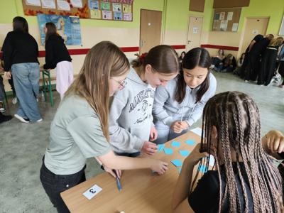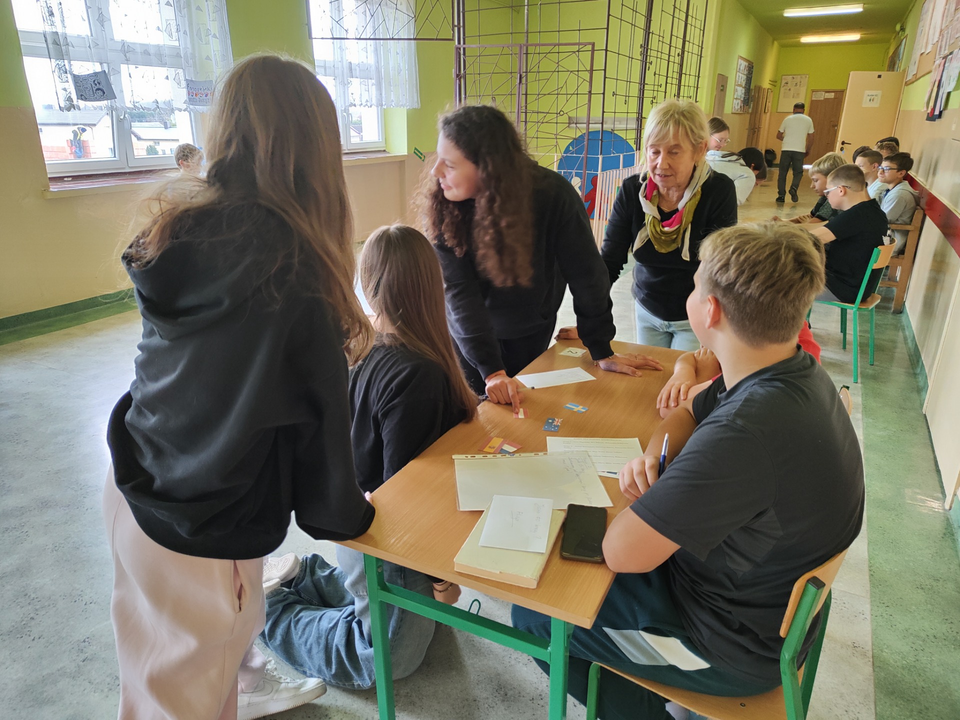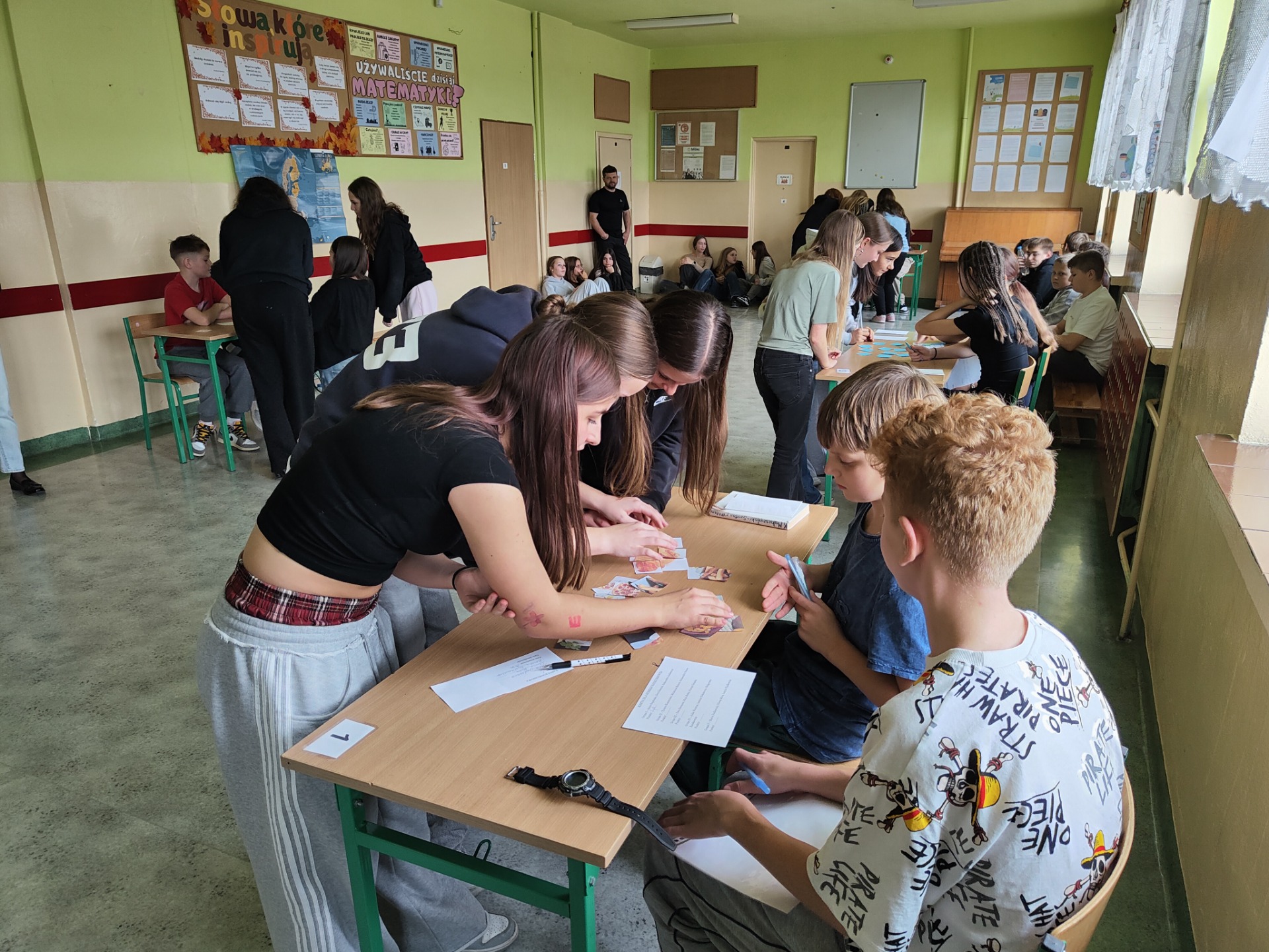 Z niewielkim opóźnieniem dnia 21 października w naszej szkole odbył się konkurs z okazji Dnia Języków Obcych. Zawody zostały przygotowane przez nauczycielki języków obcych – Kingę Roczek, Monikę Gieszcz-Grabarczyk oraz Ewelinę Idziak. Uczniowie klasy VII i VIII wzięli udział w zmaganiach na siedmiu stanowiskach. Musieli wykazać się wiedzą językową i geograficzną, rozpoznać tańce i słynne budowle z różnych stron świata, a także rozwiązać test o językach.