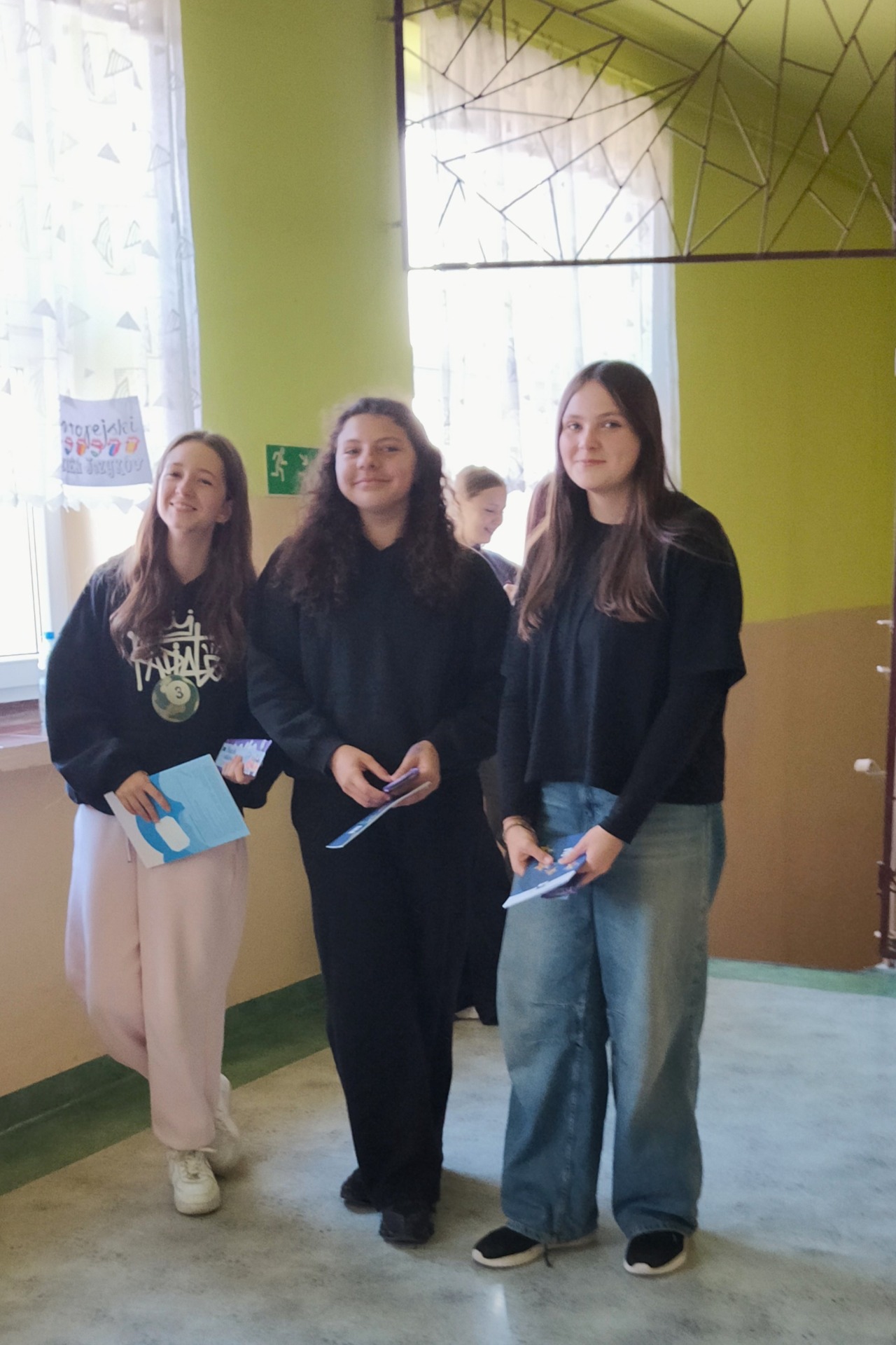 Na wyróżnienie zasłużyła kolejna ekipa z klasy VII – Hanna Gałązka, Maja Madej i Ewa Szczęsna.