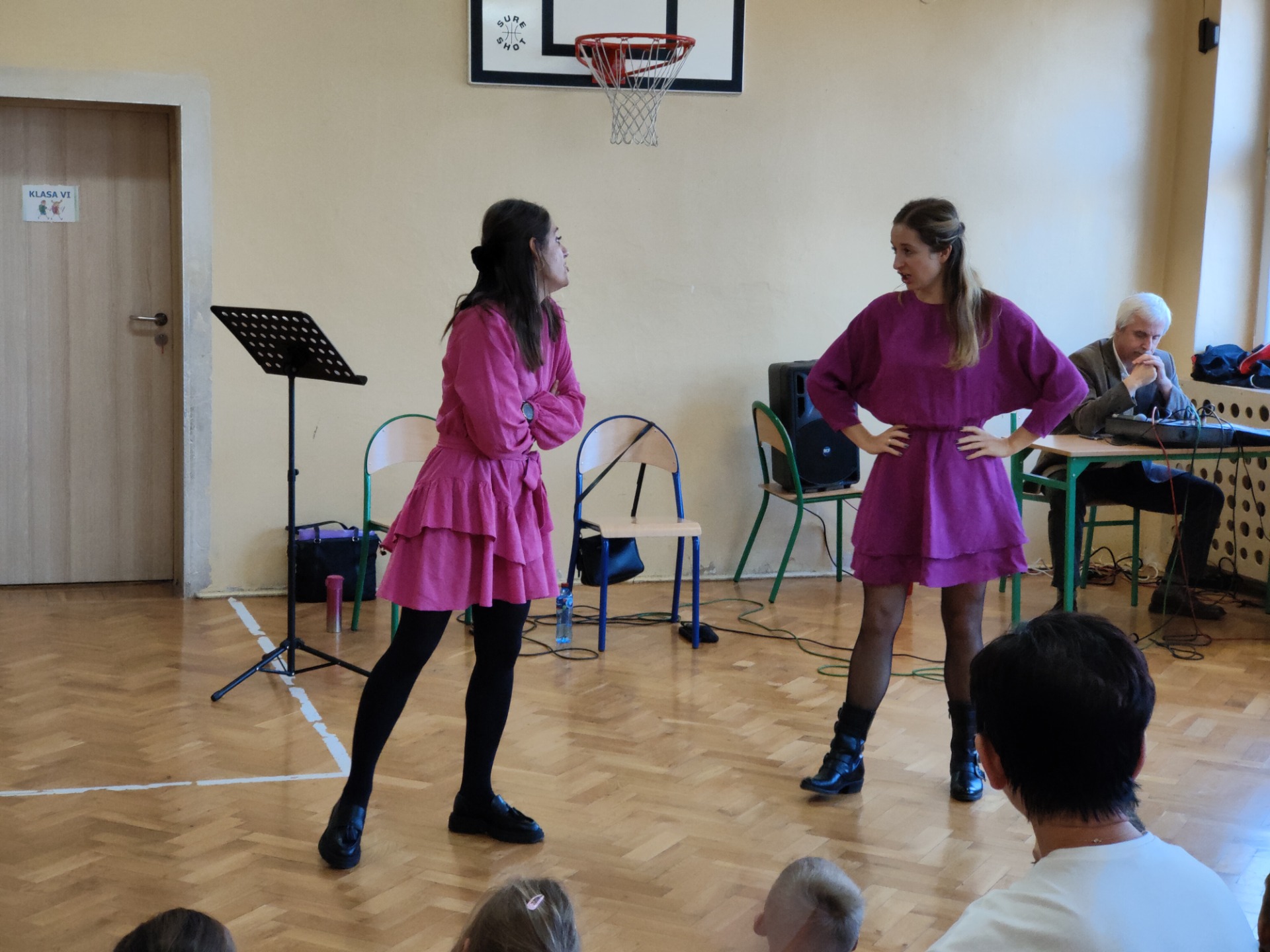 Dwie utalentowane wokalistki zaprezentowały nam przepiękne utwory operowe. Uczniowie dowiedzieli się, że opera to nie tylko potężne i wzruszające głosy! Artyści muszą być również świetnymi aktorami, którzy ruchem i mimiką oddają emocje bohaterów. To była fascynująca lekcja połączenia śpiewu z grą aktorską!