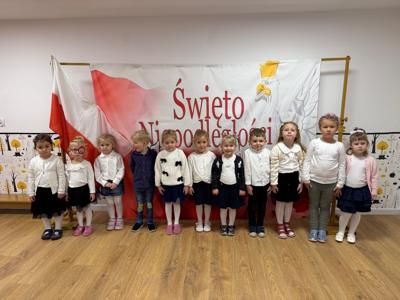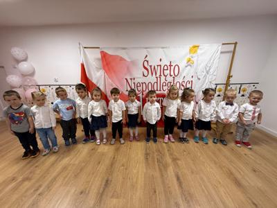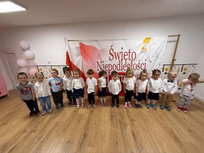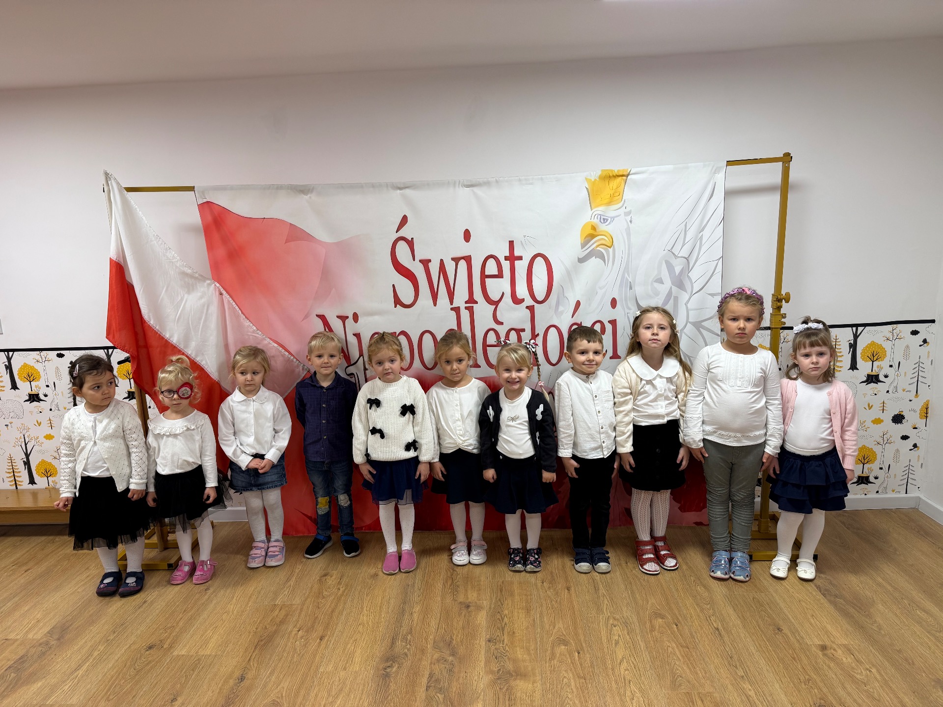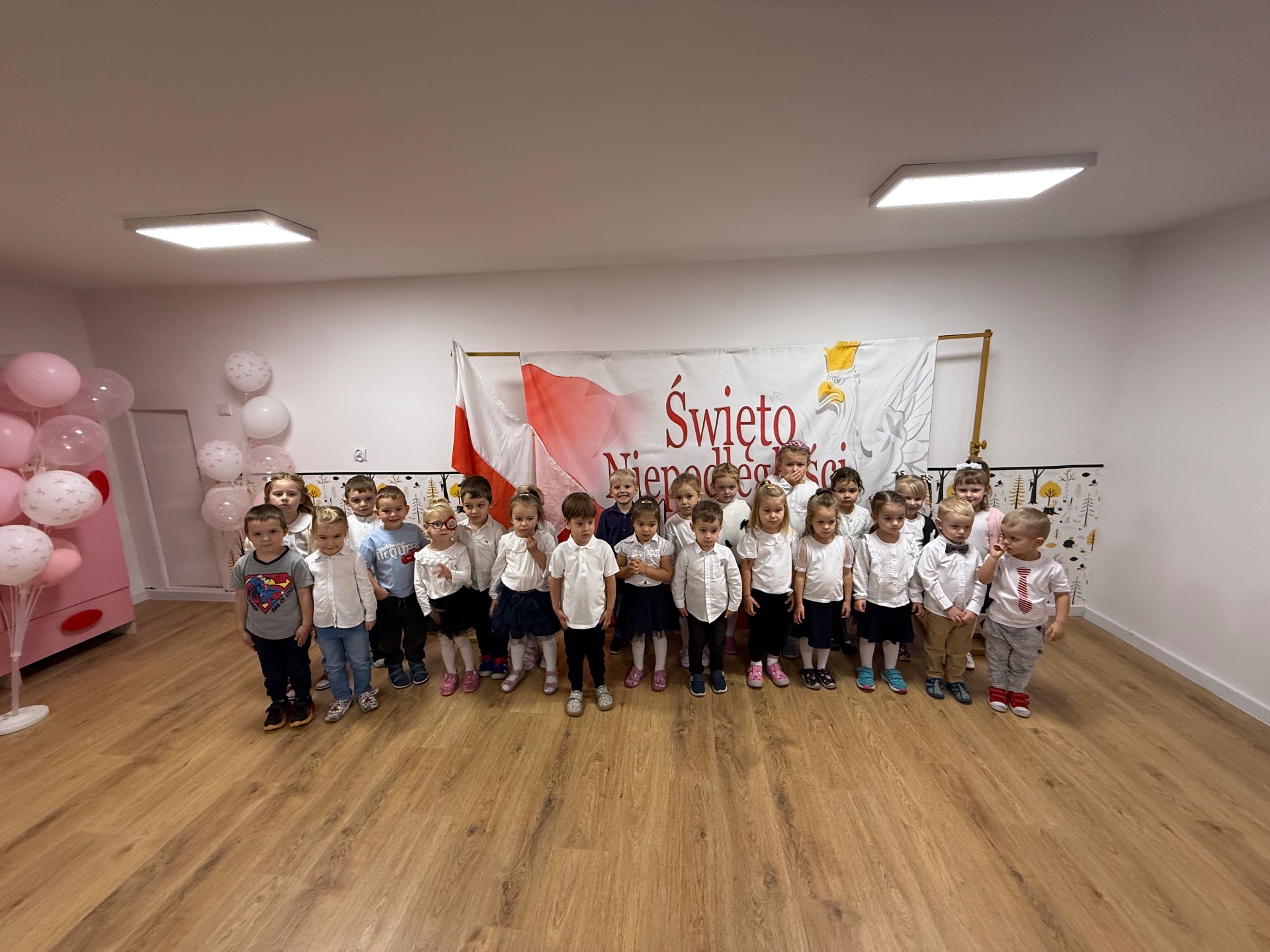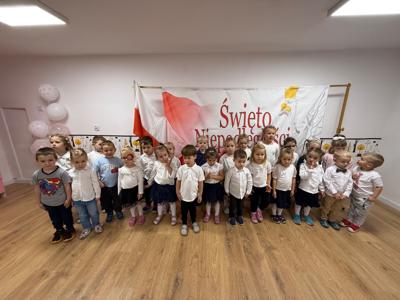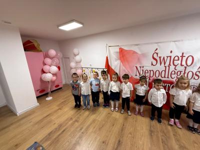 7 listopada w naszym przedszkolu odbyła się uroczystość upamiętniająca odzyskanie przez Polskę niepodległości. Śpiewem i słowem przedszkolaki okazały miłość do Ojczyzny i oddały hołd symbolom narodowym. O godzinie 11:11 cała społeczność przedszkolna odśpiewała Hymn Narodowy.