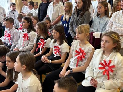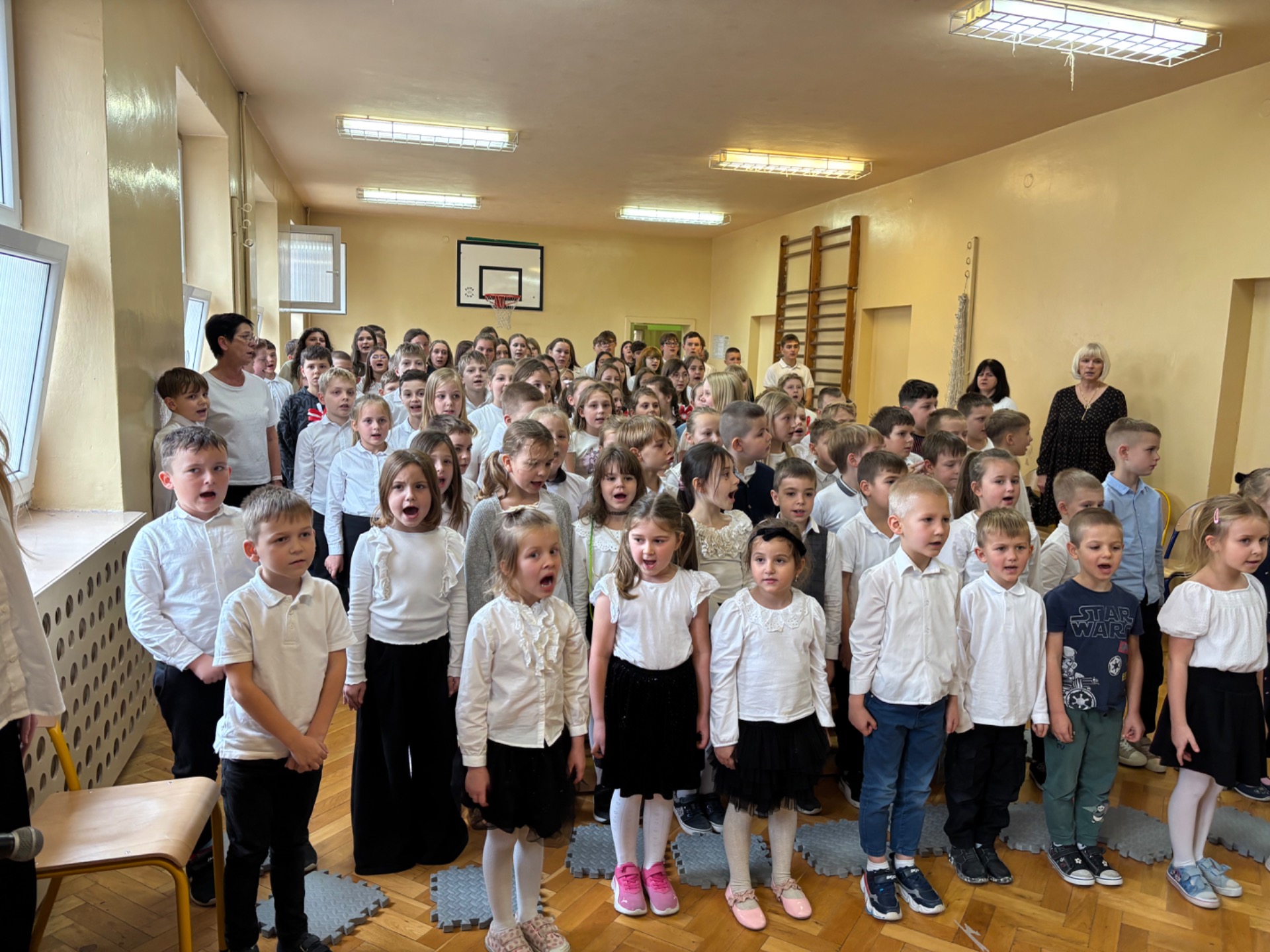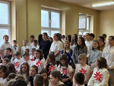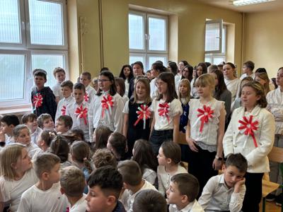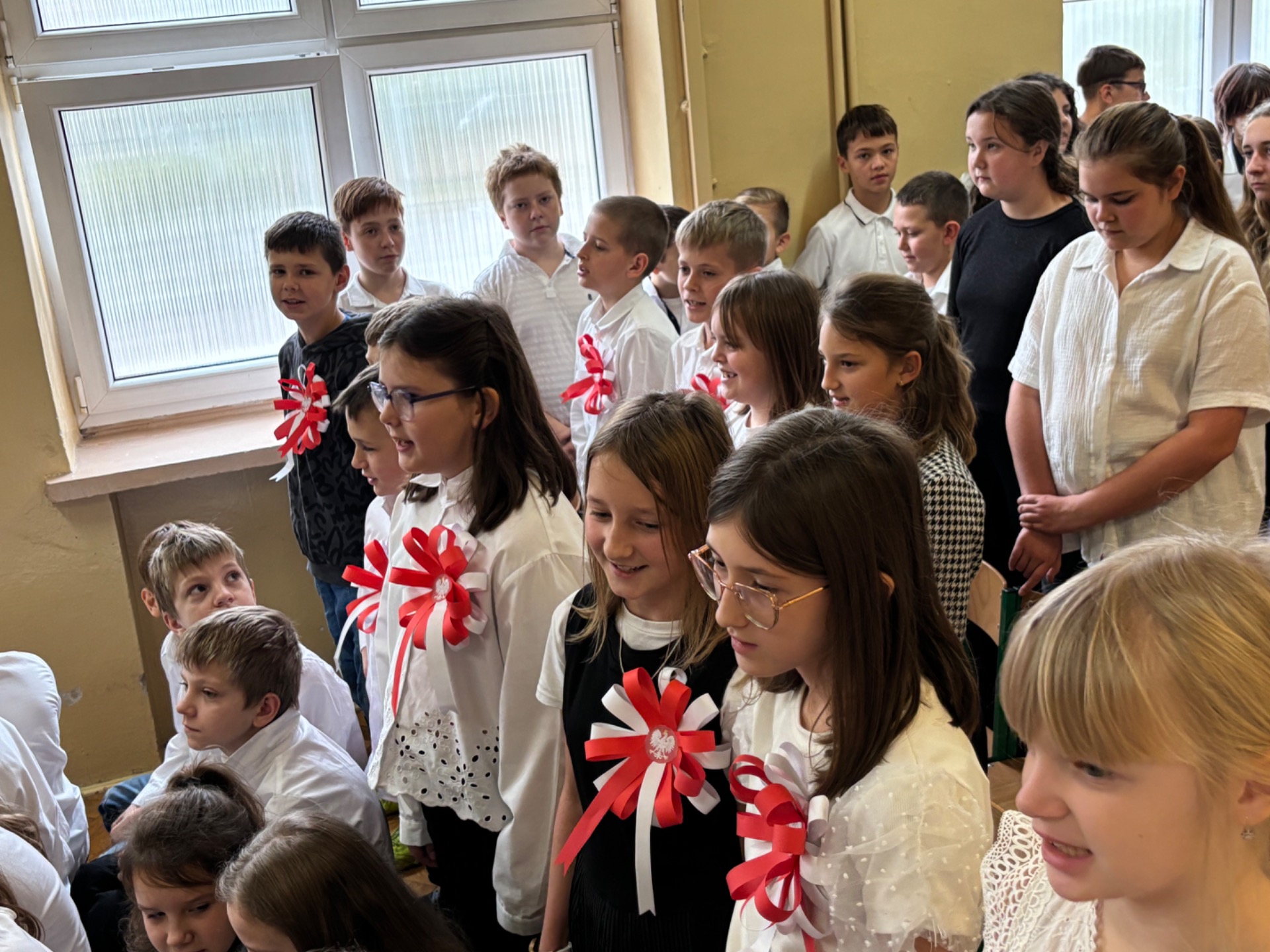 Ważnym punktem tej uroczystości było wspólne przyłączenie się do ogólnopolskiej akcji „Szkoła do hymnu”. Wszyscy razem odśpiewaliśmy cztery zwrotki „Mazurka Dąbrowskiego”. Był to moment pełen dumy i głębokiego szacunku dla symboli narodowych.