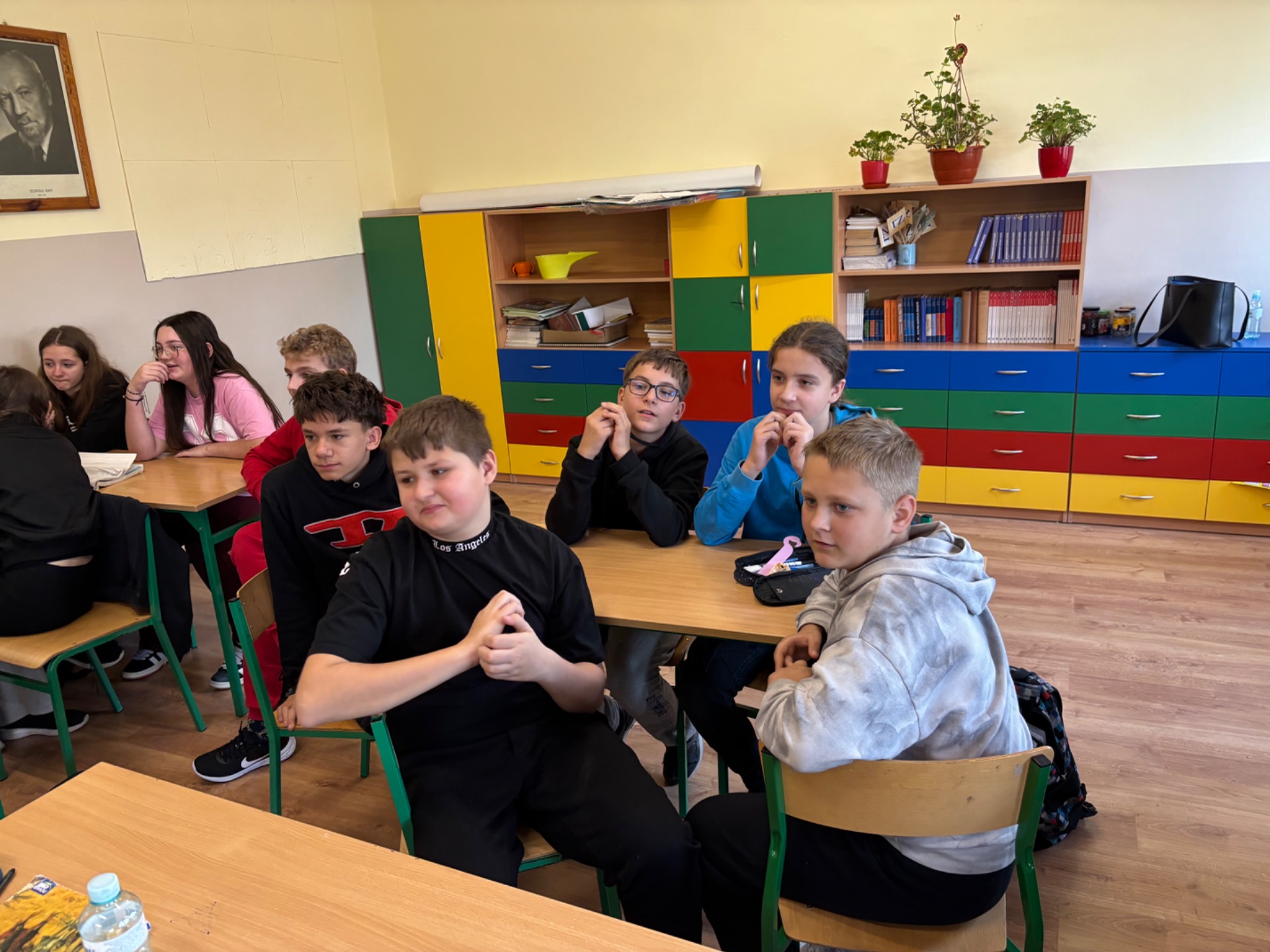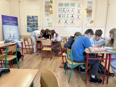 Dzisiejsze zaj臋cia to by艂a grupowa rywalizacja w quizie wiedzy o Unii Europejskiej. Wzi臋li w nim udzia艂 uczniowie klasy siódmej i ósmej.