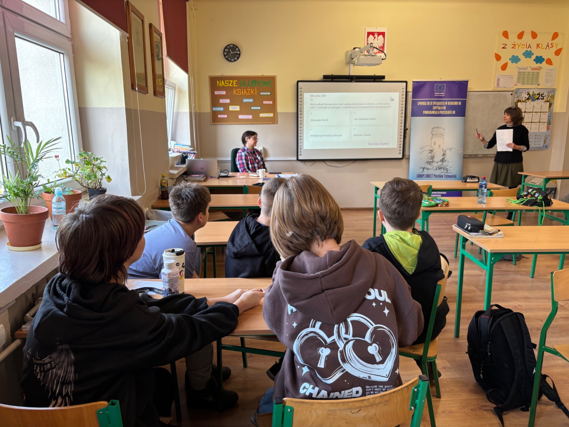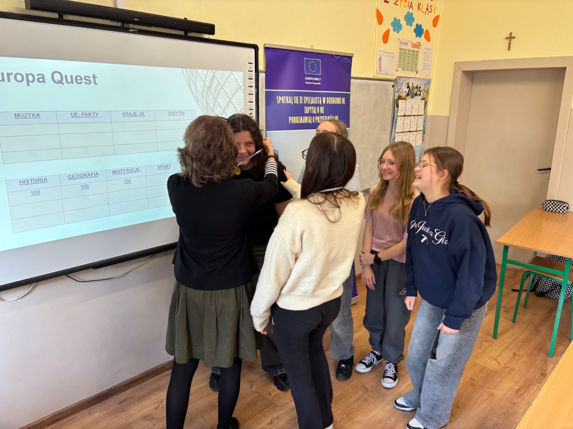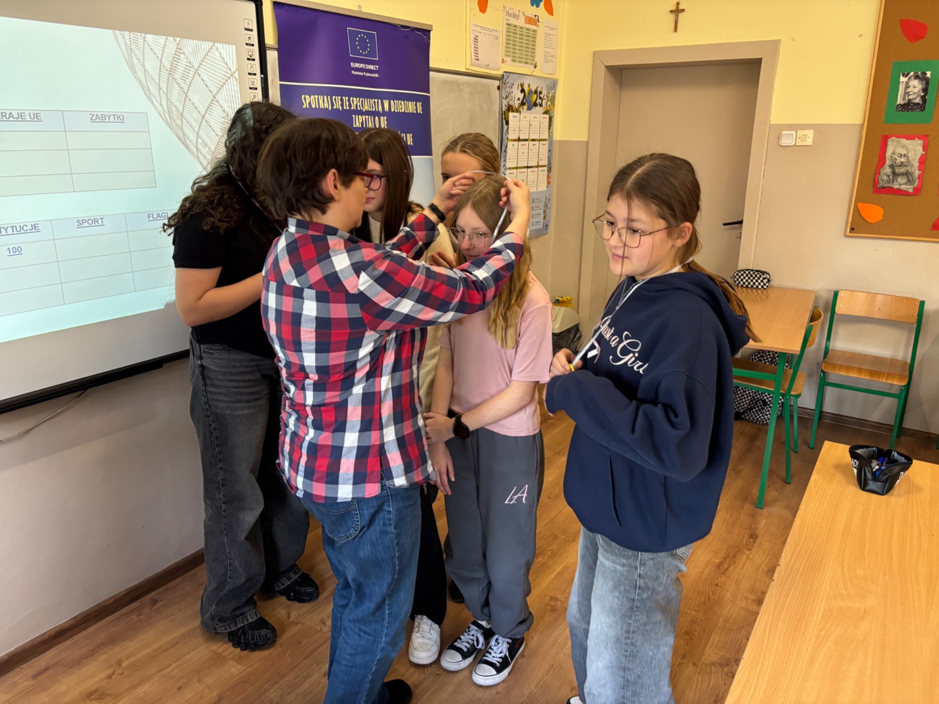 Uczestnicy mieli okazj臋 sprawdzi膰 swoj膮 wiedz臋, mierz膮c si臋 zarówno z podstawowymi informacjami na temat UE, jak i z bardziej podchwytliwymi pytaniami oraz ciekawostkami. Pytania mia艂y ró偶ny stopie艅 trudno艣ci i podzielone by艂y na kategorie takie jak np. geografia, muzyka, zabytki, flagi, sport. Nasi uczniowie wykazali si臋 ogromnym zaanga偶owaniem i ch臋tnie brali udzia艂 w zaj臋ciach, udowadniaj膮c, 偶e tematyka europejska jest im bliska i inspiruj膮ca.