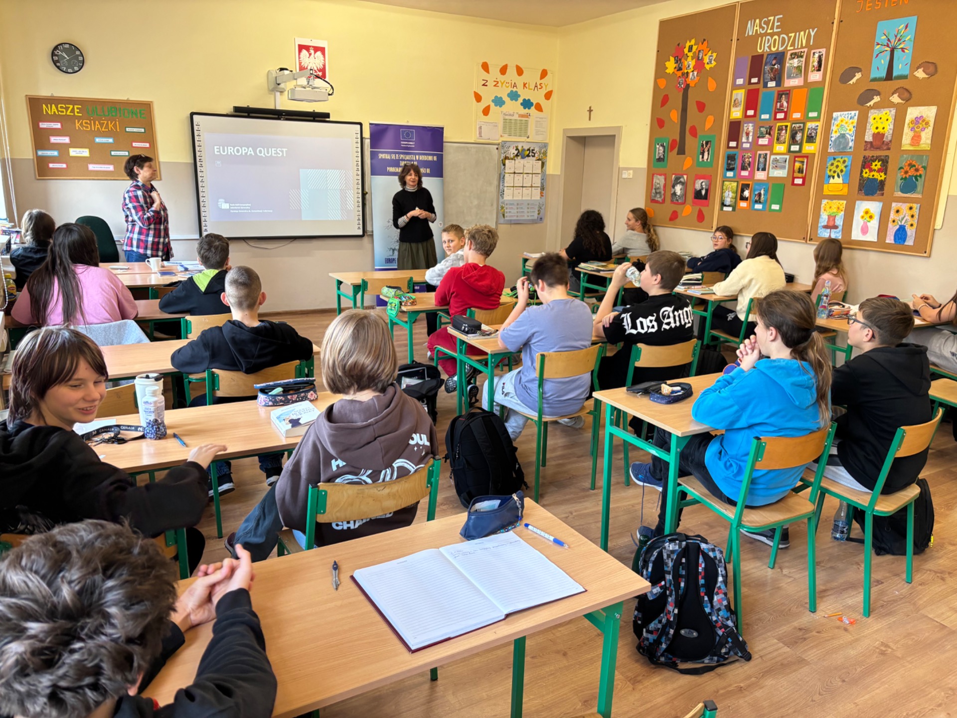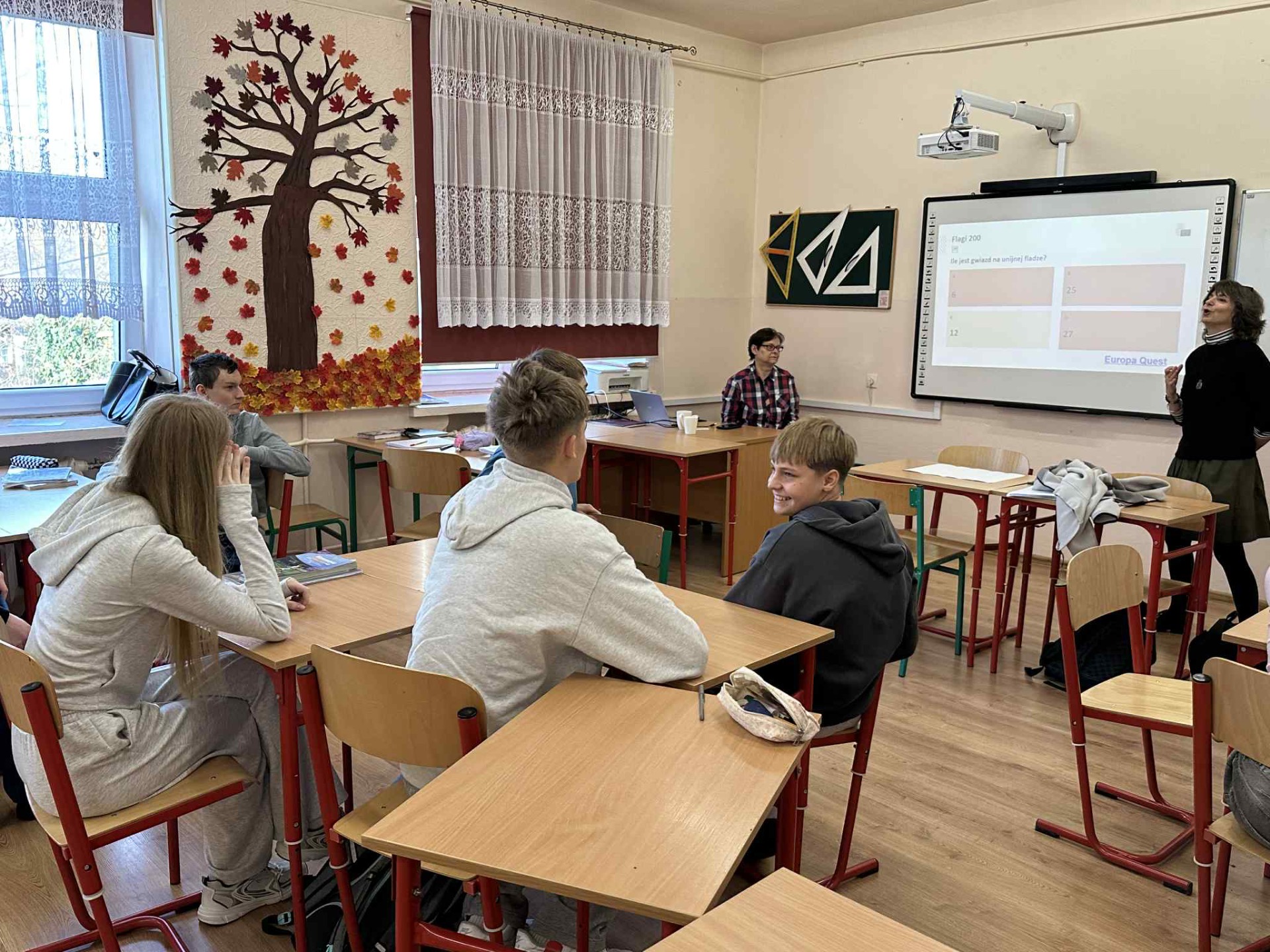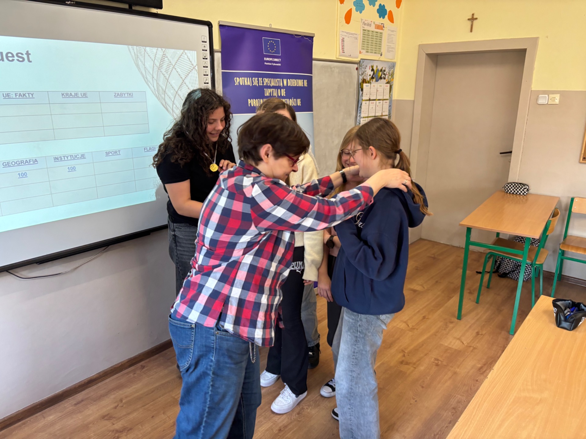Uczestnicy mieli okazj臋 sprawdzi膰 swoj膮 wiedz臋, mierz膮c si臋 zarówno z podstawowymi informacjami na temat UE, jak i z bardziej podchwytliwymi pytaniami oraz ciekawostkami. Pytania mia艂y ró偶ny stopie艅 trudno艣ci i podzielone by艂y na kategorie takie jak np. geografia, muzyka, zabytki, flagi, sport. Nasi uczniowie wykazali si臋 ogromnym zaanga偶owaniem i ch臋tnie brali udzia艂 w zaj臋ciach, udowadniaj膮c, 偶e tematyka europejska jest im bliska i inspiruj膮ca.