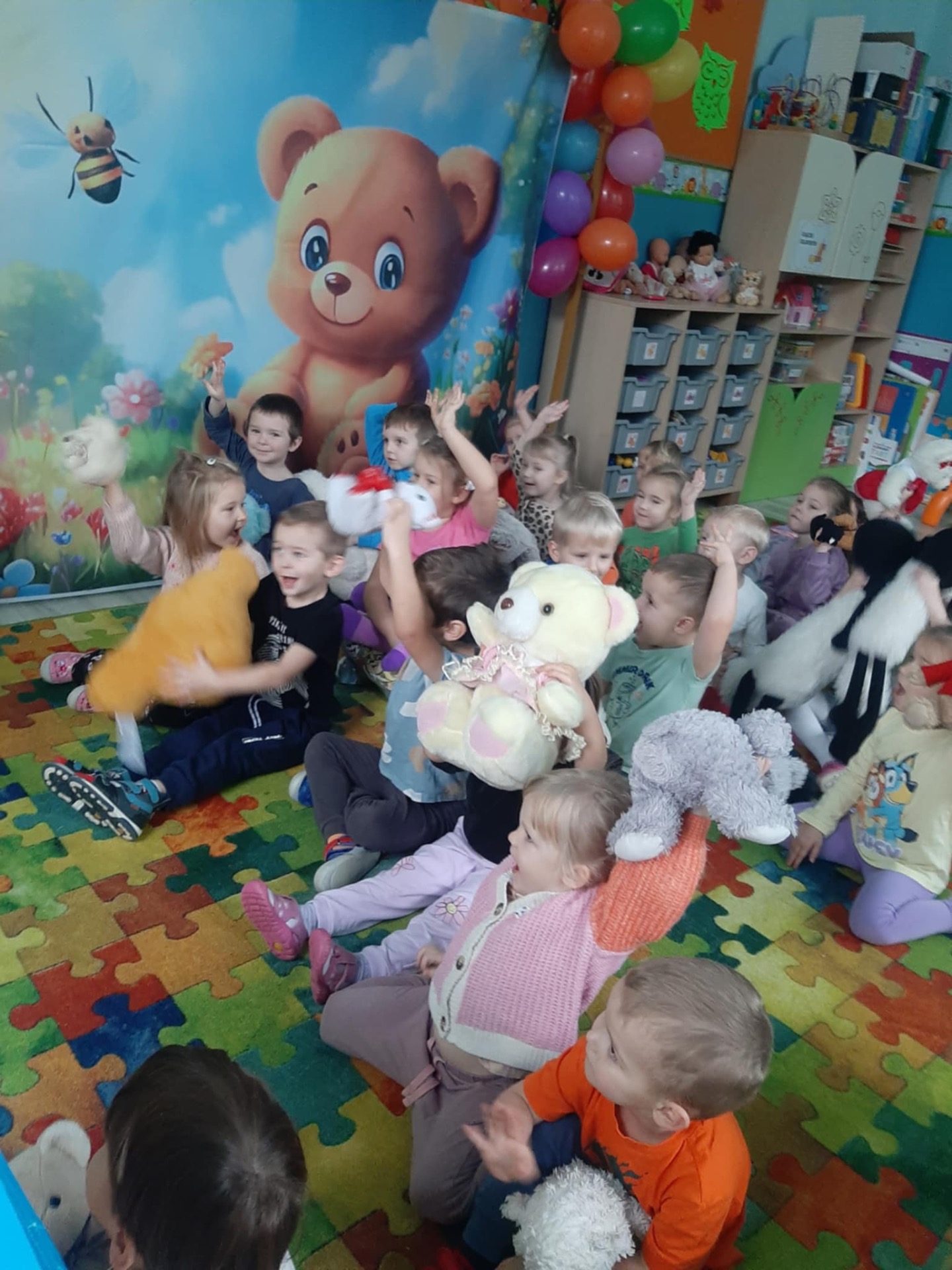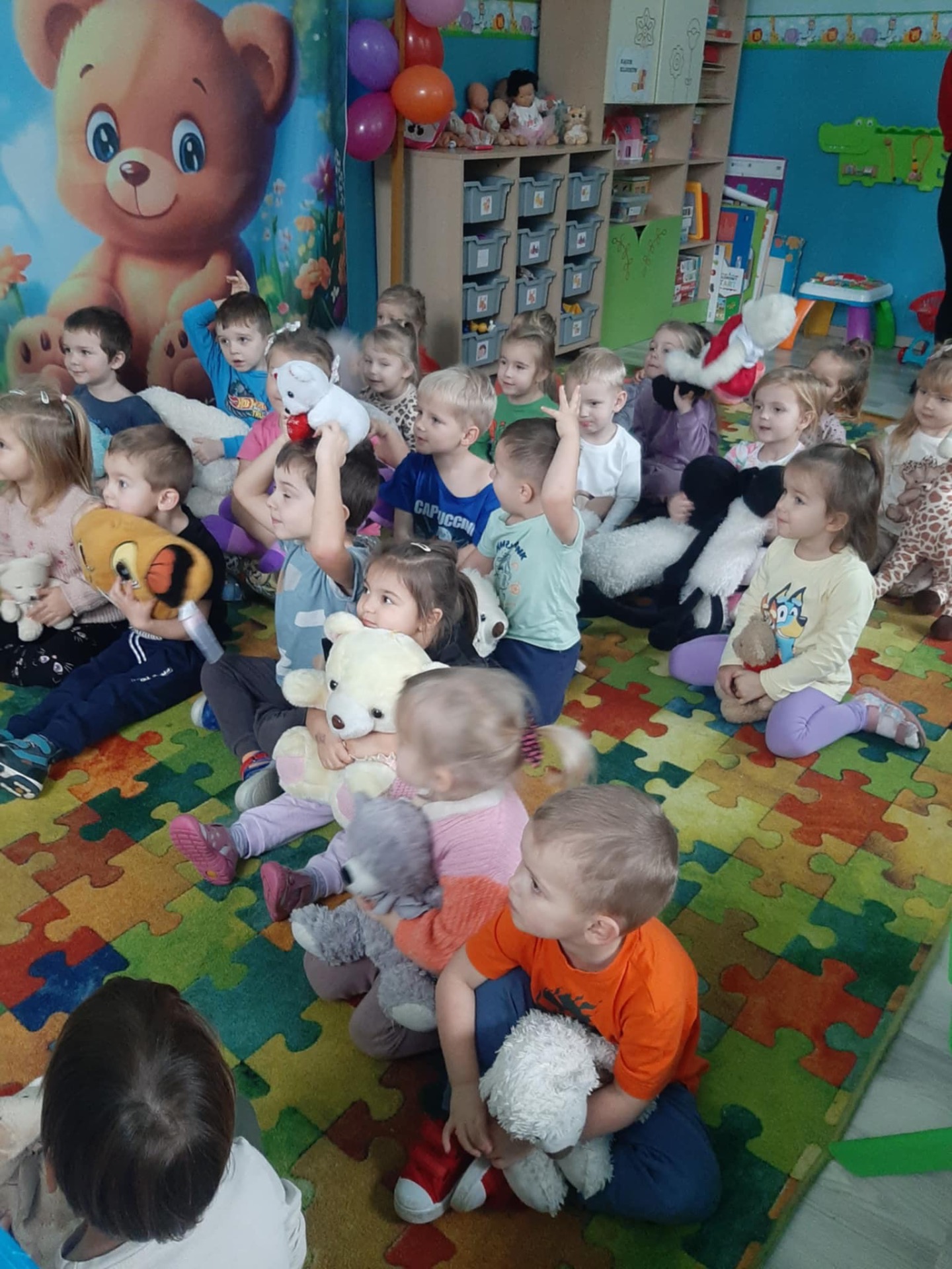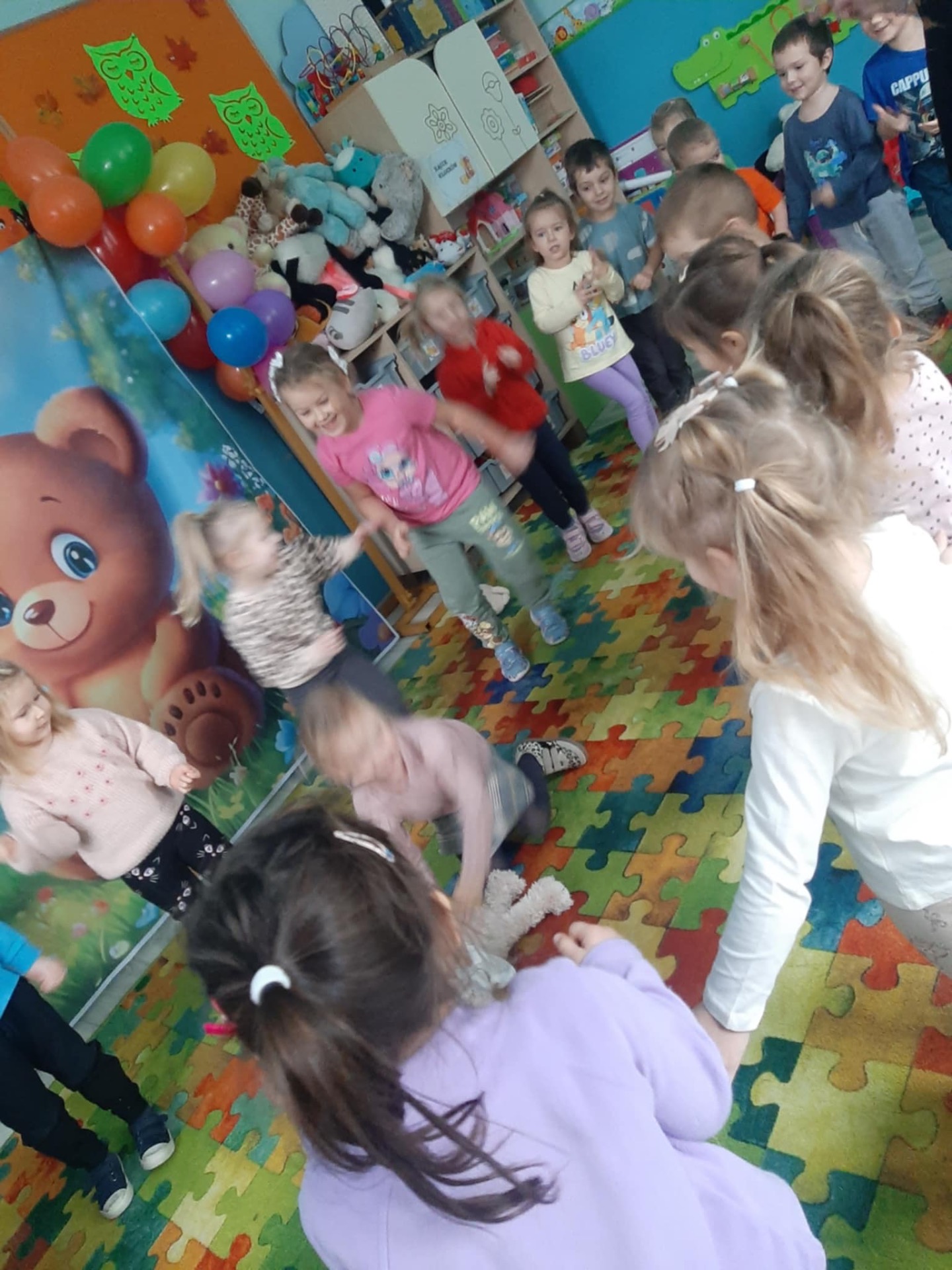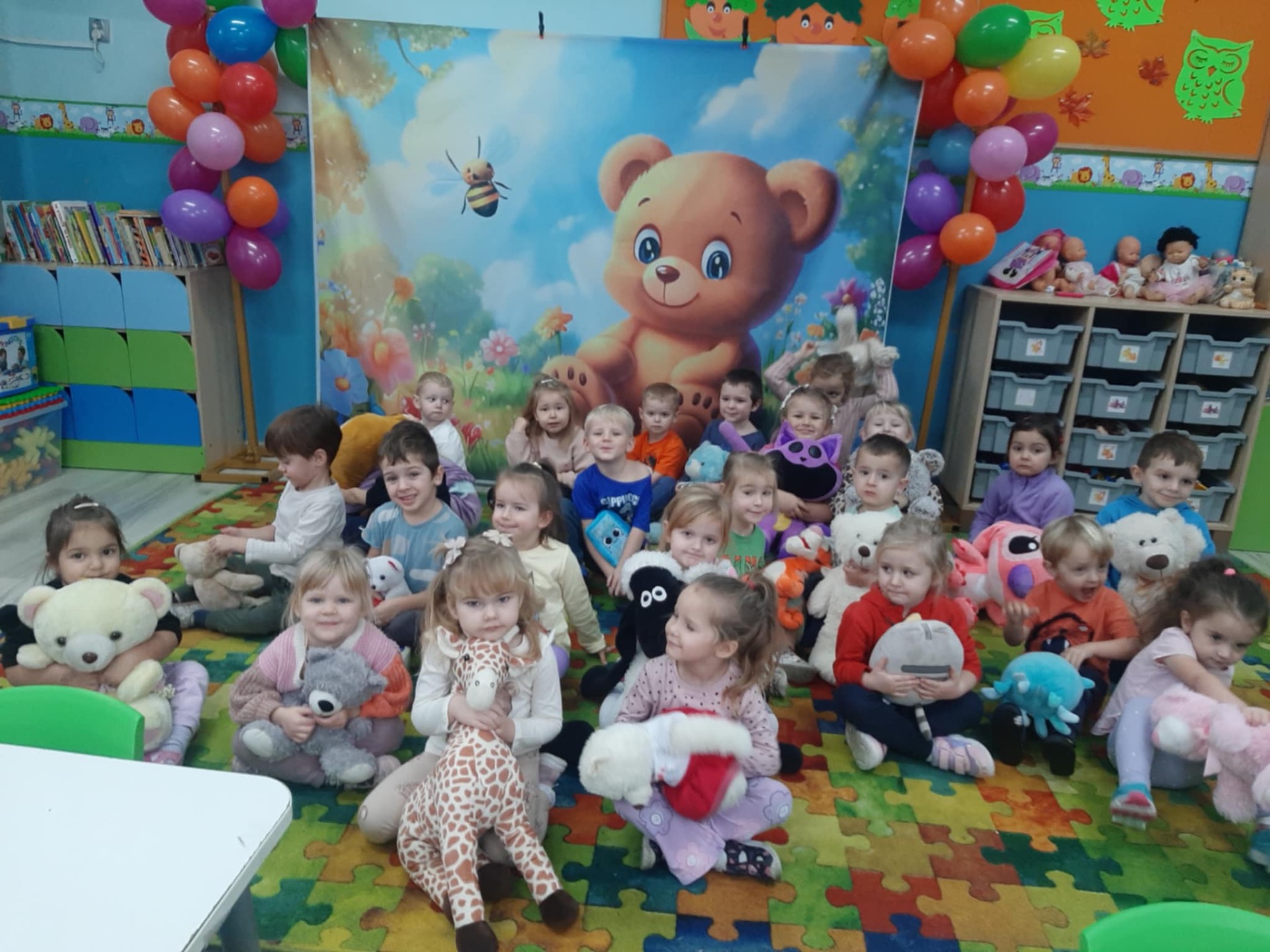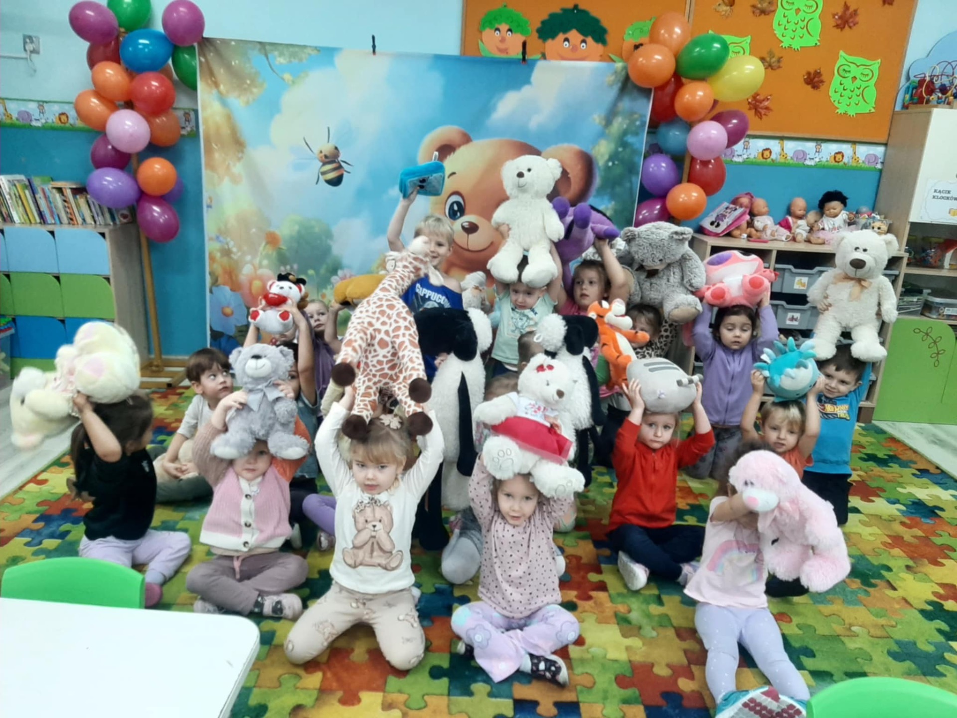 W naszym przedszkolu obchodziliśmy Dzień Pluszowego Misia – święto pełne uśmiechu, wspólnej zabawy i ulubionych maskotek. Dzieci przyniosły swoje ukochane misie, które towarzyszyły im przez cały dzień. Przedszkolaki brały udział w misiowych zabawach ruchowych, słuchały opowieści o misiach oraz rozwiązywały zagadki i zadania związane z bohaterami bajek. Nie zabrakło też wspólnych zdjęć i prac plastycznych. To był radosny dzień, który podkreślił, jak ważna jest przyjaźń, ciepło i małe rzeczy, które dają dzieciom poczucie bezpieczeństwa.