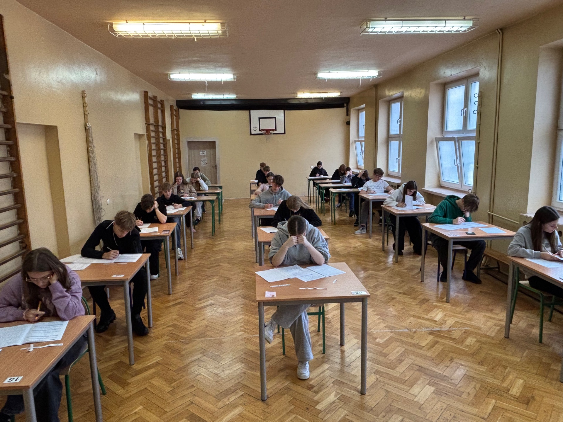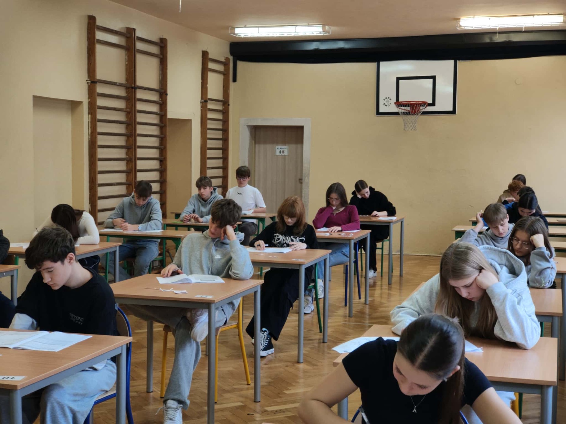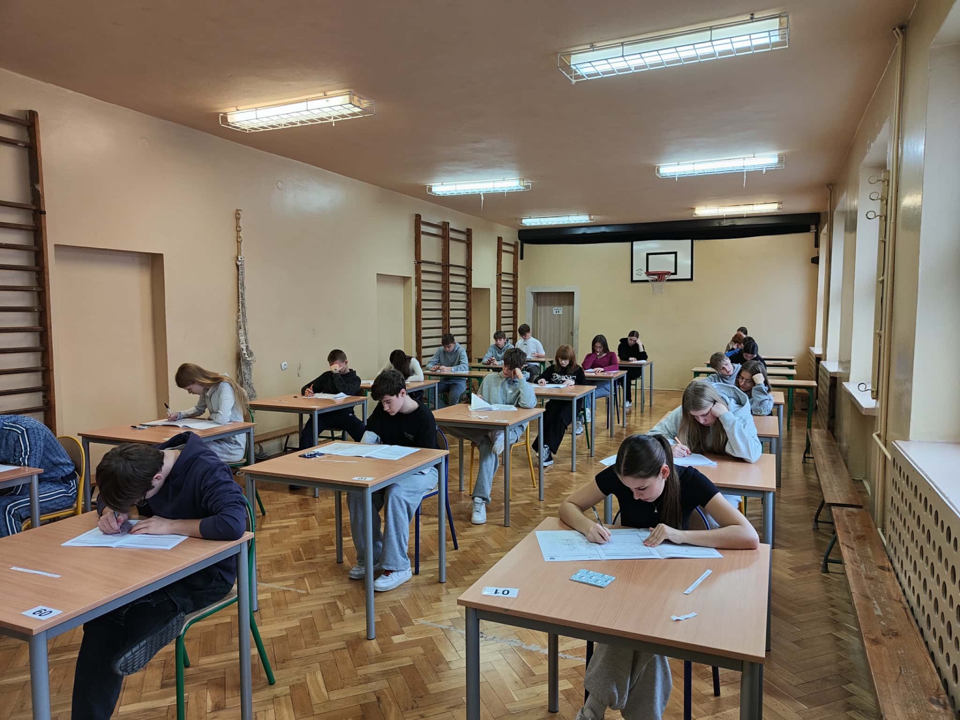 Przez trzy dni uczniowie klasy ósmej naszej szkoły mierzyli się z próbnym egzaminem ósmoklasisty. Pierwszego dnia uczniowie przystąpili do części z języka polskiego. Musieli wykazać się umiejętnością czytania ze zrozumieniem, analizą tekstu literackiego oraz napisaniem opowiadania lub rozprawki. Drugiego dnia odbył się sprawdzian z matematyki. Dla większości był to najbardziej stresujący etap, ponieważ wymagał nie tylko znajomości wzorów i zasad, ale też logicznego myślenia oraz dokładnego obliczania. Uczniowie zmagali się z zadaniami tekstowymi, równaniami oraz geometrią. Ostatniego dnia uczniowie pisali egzamin z języka angielskiego. Sprawdzane były umiejętności słuchania, czytania oraz znajomość gramatyki i słownictwa. Próbny egzamin okazał się cennym doświadczeniem. Egzamin ten pozwolił uczniom zapoznać się z procedurami obowiązującymi podczas właściwego egzaminu, sprawdzić poziom przygotowania oraz oswoić się z atmosferą towarzyszącą temu wydarzeniu. Następny próbny egzamin odbędzie się w marcu. Wyniki i wnioski z próbnych testów pomogą lepiej przygotować się do właściwego egzaminu, który zbliża się wielkimi krokami.