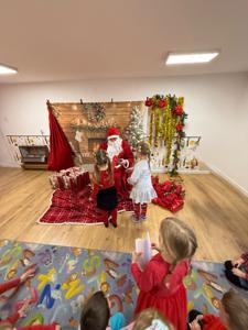 Najbardziej wyczekiwanym momentem było wręczenie prezentów. Każde dziecko otrzymało upominek i miało chwilę, aby porozmawiać z Mikołajem. Nie zabrakło również wspólnych zdjęć, które będą piękną pamiątką z tego wyjątkowego dnia.