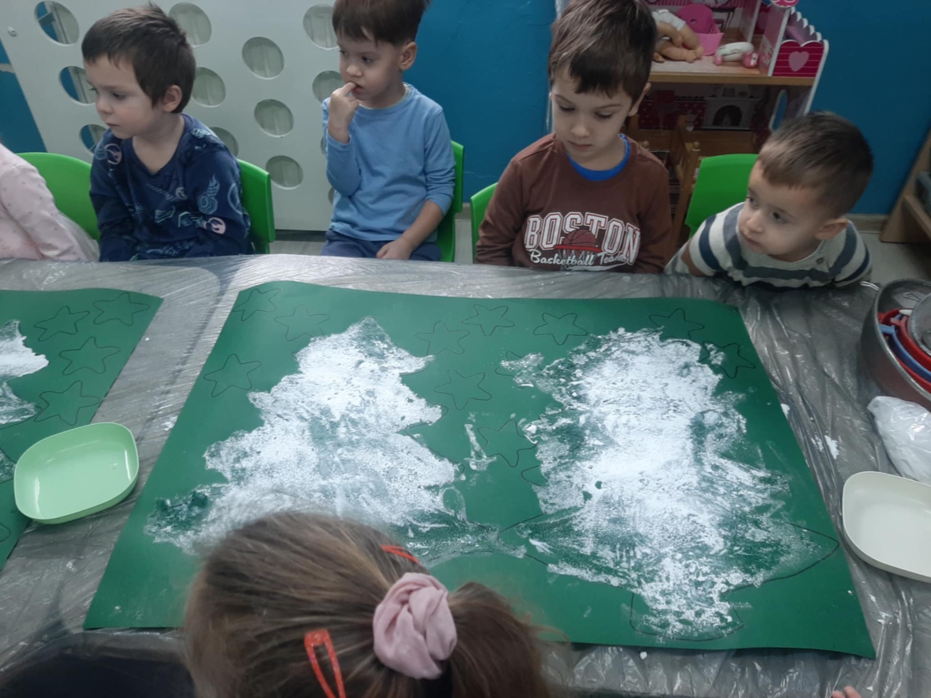 Dziś w naszym przedszkolu odbyły się kreatywne zajęcia sensoplastyczne, podczas których dzieci miały okazję rozwijać swoje zmysły oraz wyobraźnię. Tematem przewodnim była świąteczna choinka.